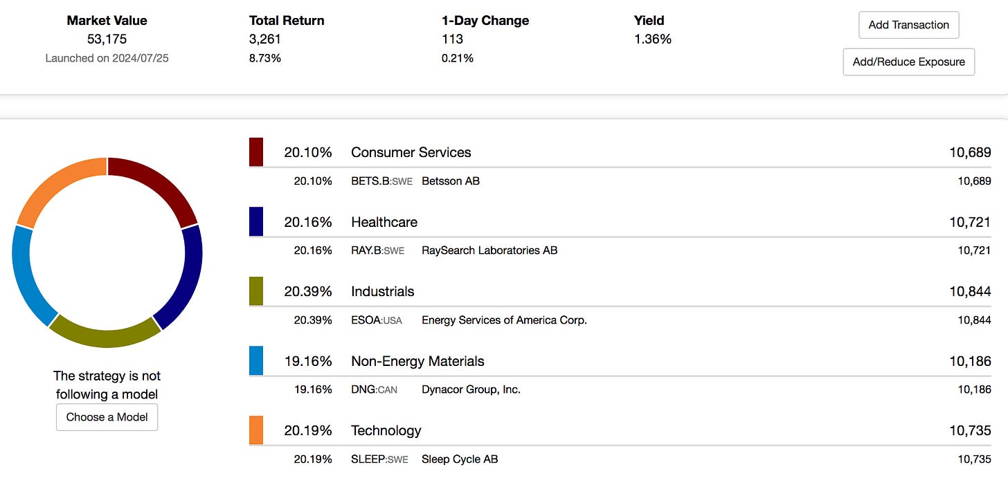 The portfolio with the five companies is performing very well, almost doubling the S&P 500 with less volatility. It has returned 9% in these couple of months.
